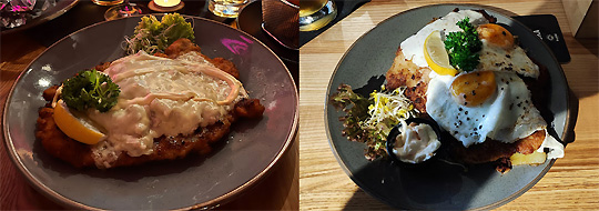Geschnetzeltes vom Schwein in Rahmsauce mit saurer Gurke und roten Zwiebeln, dazu gebutterter Reis